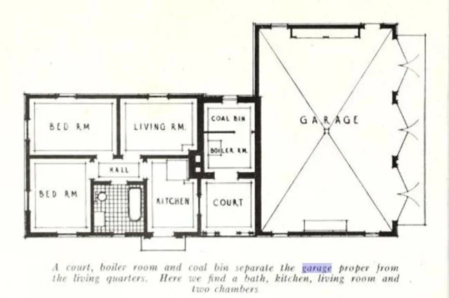 Figure 6: Detached Garage with service spaces and chauffeurs house, 1919